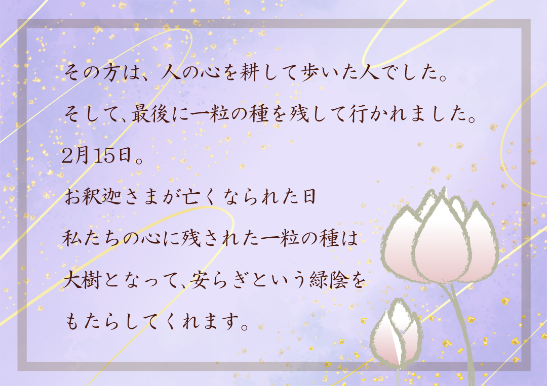 涅槃会法要とざぶとんコンサートのご案内