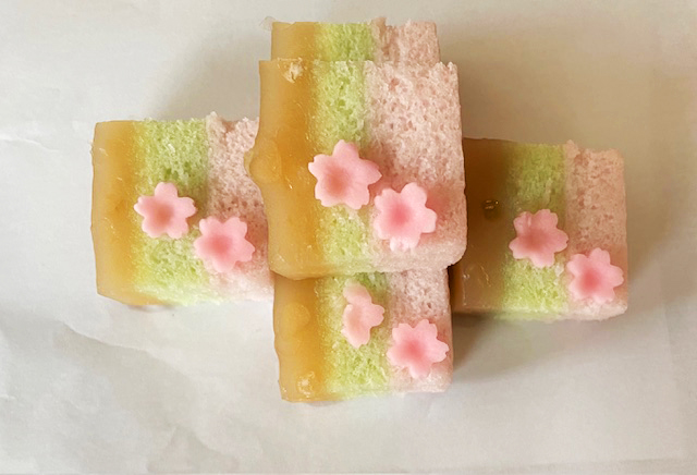 お菓子も桜や菜の花を表現したもの、焼き菓子もイチゴ柄のプリントされたもの。